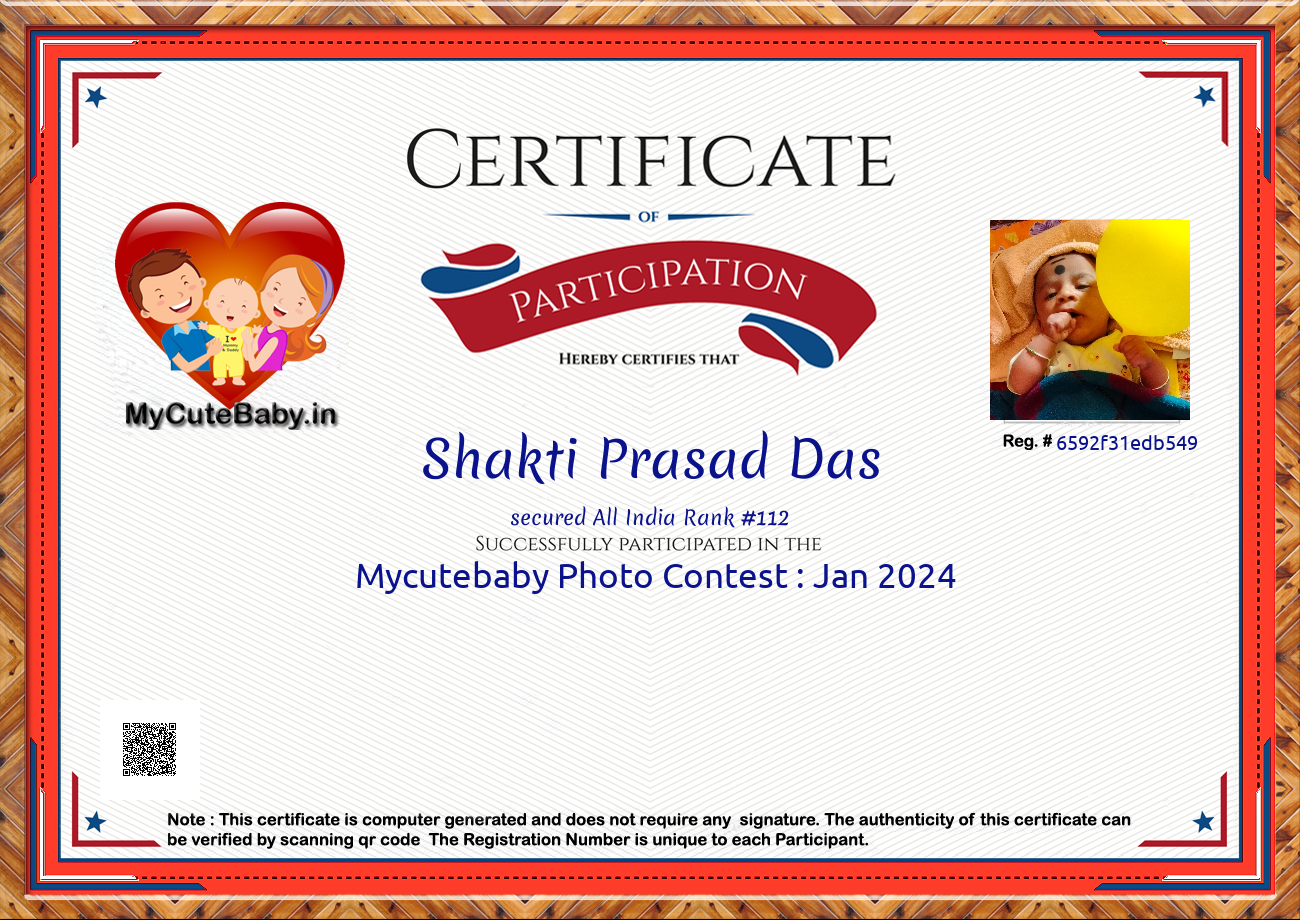 This Participations Certificate Is Verified With Registration Number #6592f31edb549