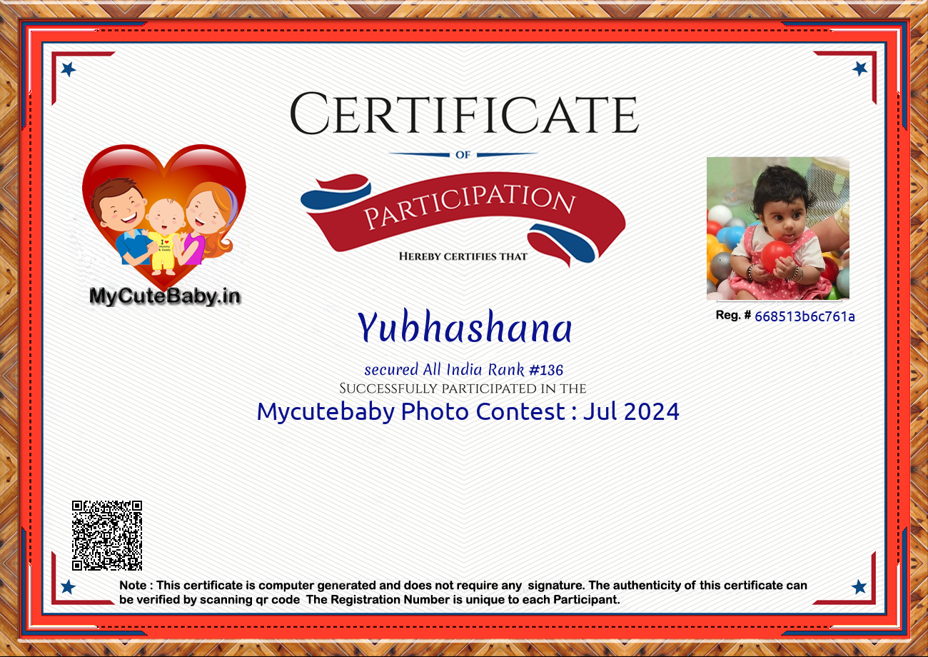 For participation in Mycutebaby's Monthly  contest ,  July 2024 .
