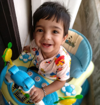 “ He is a very active kid . He reacts very frequently . Started toddling a bit . Started poking mom and papa. He is just 10 months now. ”