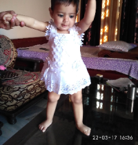 “ She is a 2 yrs old cute girl, one thing about her is she knows how to copy n paste.. hehehe yes, she copies what her elder sis says and repeat it very quickly in a very sweet voice that everyone loves to hear again n again. She knows how to give flying kiss when father goes out. Love her very much. Muuuuuuuaaahhh ”