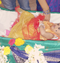 “ My cute little angel.. youngest fan of dr.Rajkumar, Kannada film industry legendary actor n singer.. We use a trick to stop her cry by playing dr.raj songs ”
