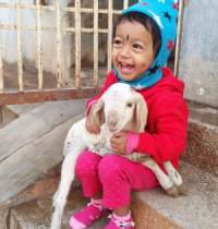 “ My kids are girl twins. First twin is Taanvi who is participating in this contest. Not sure if both could participate. Taanvi is very smart in her activities. Quick witted and loves animals. Hence I chose this photo where she is anxious to take the lamb in her hand and carress it. We love our angels. ”