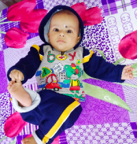 “ My baby boy name is Aarav Balyani. He is 11 months old. His colour is fair and eyes colour is black.He is very active and naughty boy. My sweetest Aru, you are happy, giggly, glowly, eleven months old with personality for days. You have a contagious belly laugh that gets everyone giggling, you rarely meet a strangerand you are the sweetest baby i know. And i am not just saying that because i am your mom.I am so glad i get the opportunity to play with you all day, every day.My sweetest aarvu.. ”