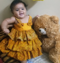 “ 'HEIDI' is 6 months young princess.. She is Pappas girl & Mammas world,queen of expressions and gets attracted towards RED, loves roaming anytime, much active and less crying, always in her happy bubble and makes everyone smile back at her ”