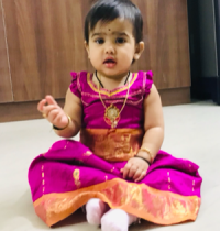 “ She is 10 months old, can say Amma, Nanna, Thata, Atha, Papa based on her mood. Can walk four to five steps without any support, can point out her finger at the things she want, had a cute smile which relieves my stress after days work. I love my cute child. ”