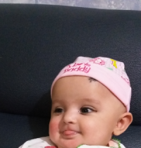 “ She is a funny cute kid of 5 month doing mischiveous thing ”