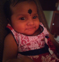 “ A little miracle sent from above,a baby girl to cuddle and love,a giggle wrapped in sunshine,my baby girls tiny fingers and ticklish toes,fancy ribbons,little pink bows,a bundle of joy.she is my 4 month old little princess geethika saanvi ”