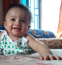 “ Mostly in joyous mood, seldom cries but knows tricks to keep indulgence on his side. 7 months and already started uttering Mumma, Babba without knowing the meanings. Always charges up everybody with the smile that implodes the entire happiness of the world. ”