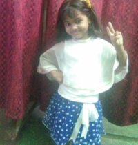 “ She study in 1st class, and she Like do dance, she likes chocolate very much, and she is very naughty and cute girl and her hobbies is too much chocolate and race. And she was feel good after doing sket and her voice is very beautiful and she always sing a song, and she loves our father too much. Thank you . ”
