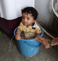 “ The kid, name shivansh....is about 11 months. He is so sweet, with world best smile with his 2 teeth. Walking with his knee. ”