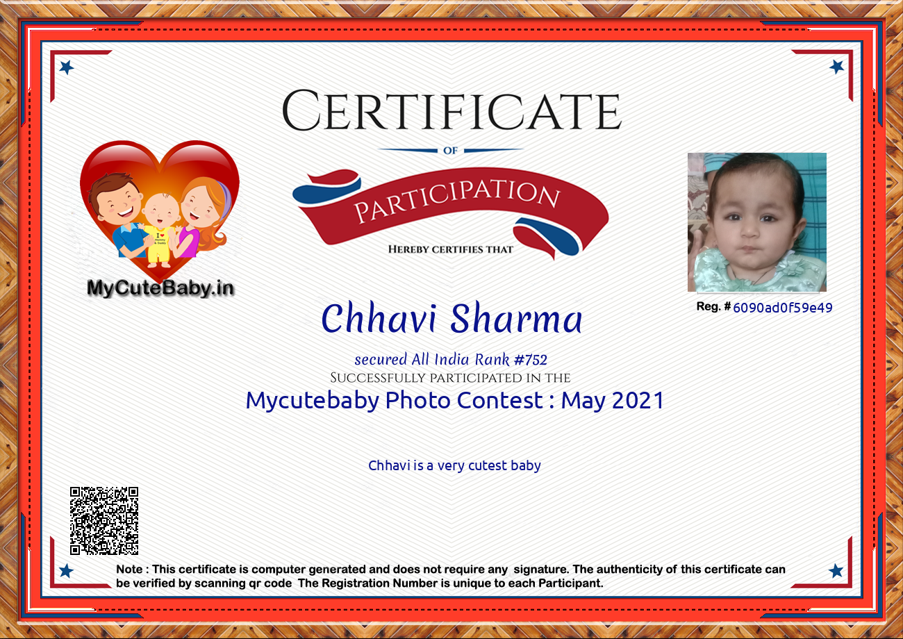 Participation certificate for all the participants whose mycutebaby votes are more than 1000.