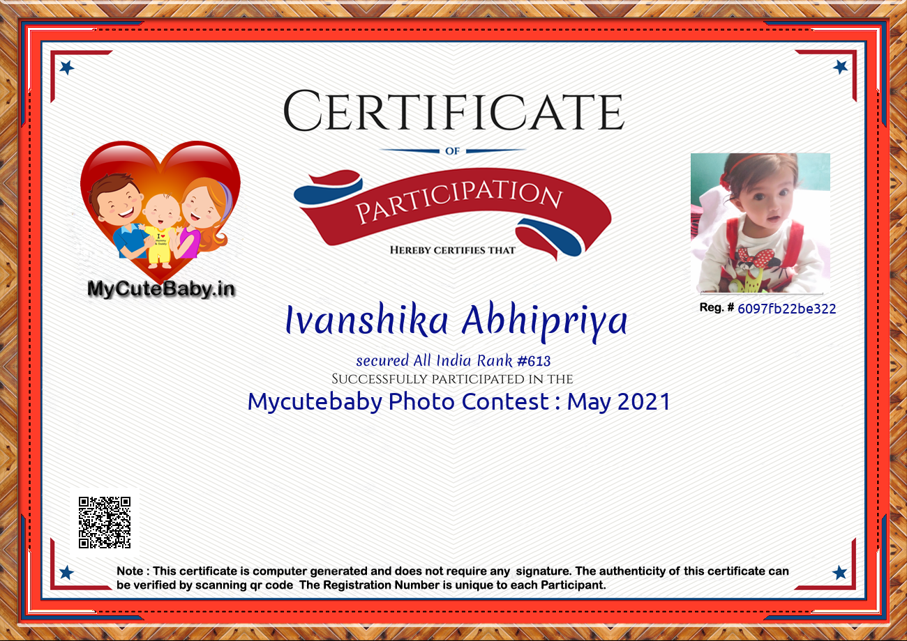 Participation certificate for all the participants whose mycutebaby votes are more than 1000.