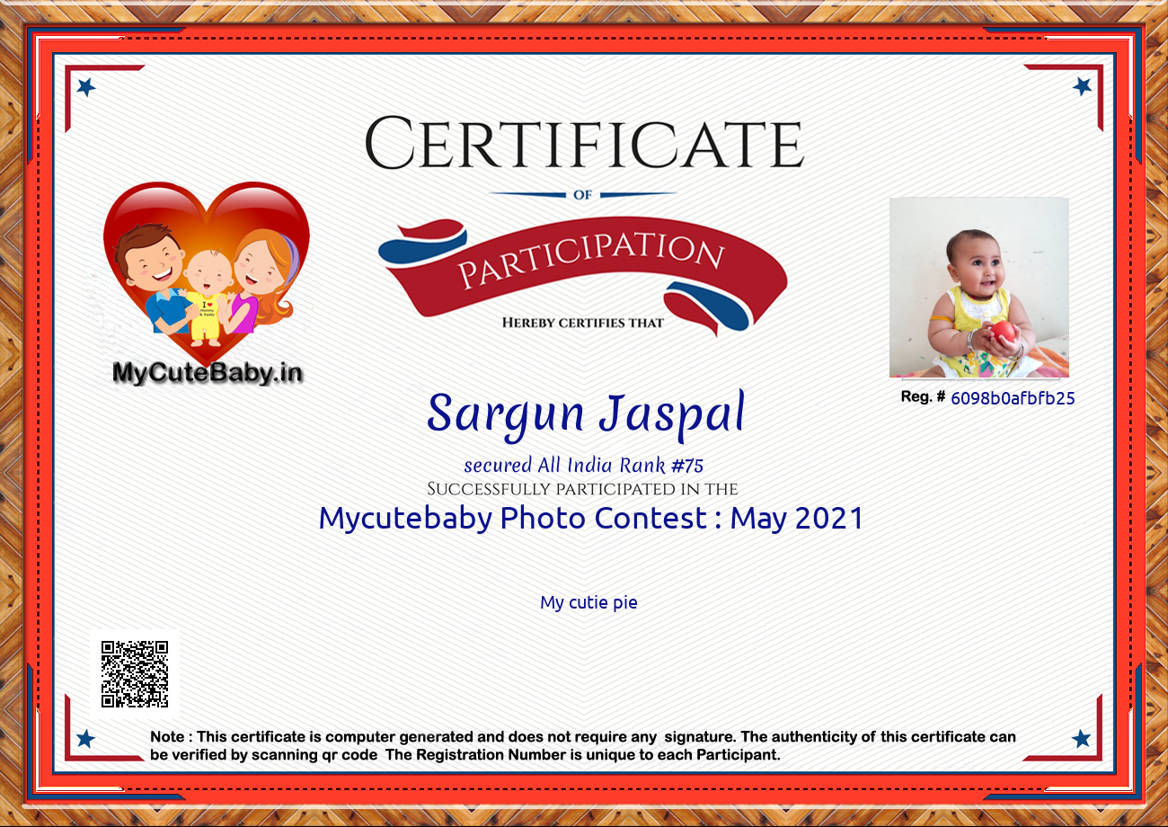 Participation certificate for all the participants whose mycutebaby votes are more than 1000.