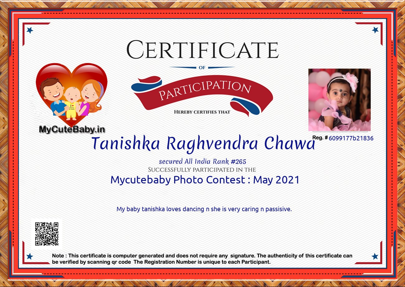 Participation certificate for all the participants whose mycutebaby votes are more than 1000.