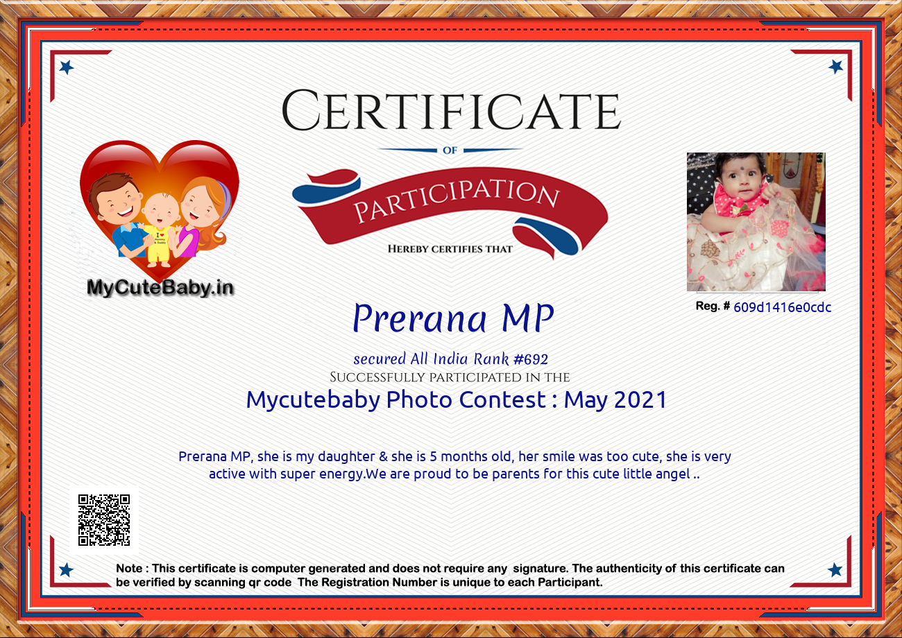 Participation certificate for all the participants whose mycutebaby votes are more than 1000.