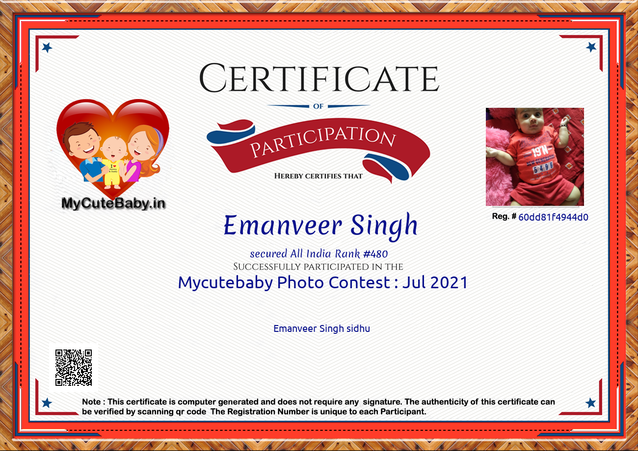 Participation certificate for all the participants whose mycutebaby votes are more than 1000.