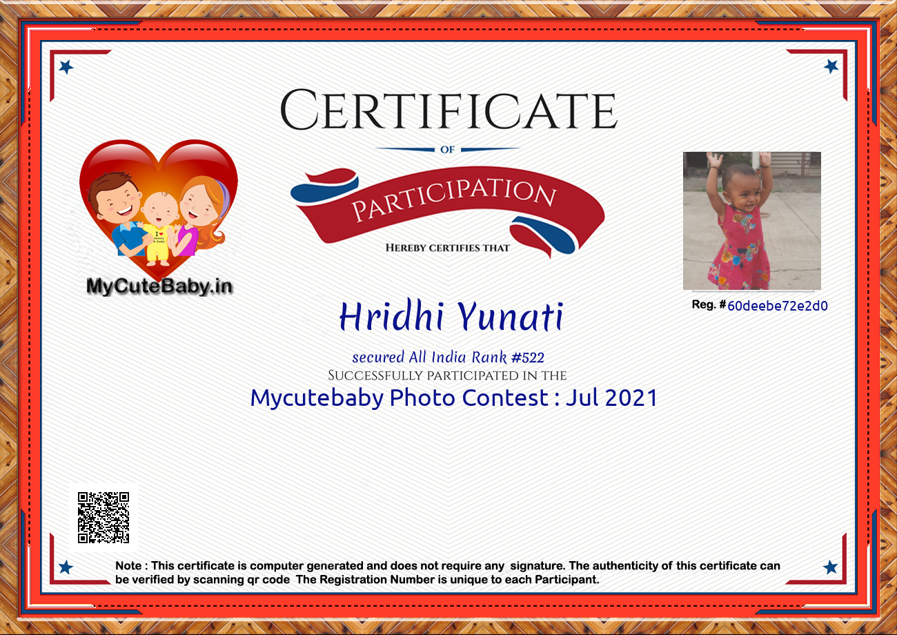Participation certificate for all the participants whose mycutebaby votes are more than 1000.