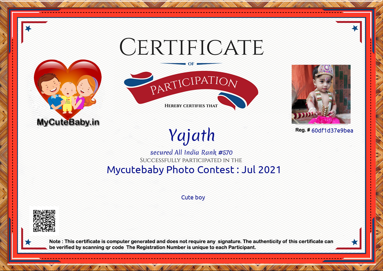 Participation certificate for all the participants whose mycutebaby votes are more than 1000.