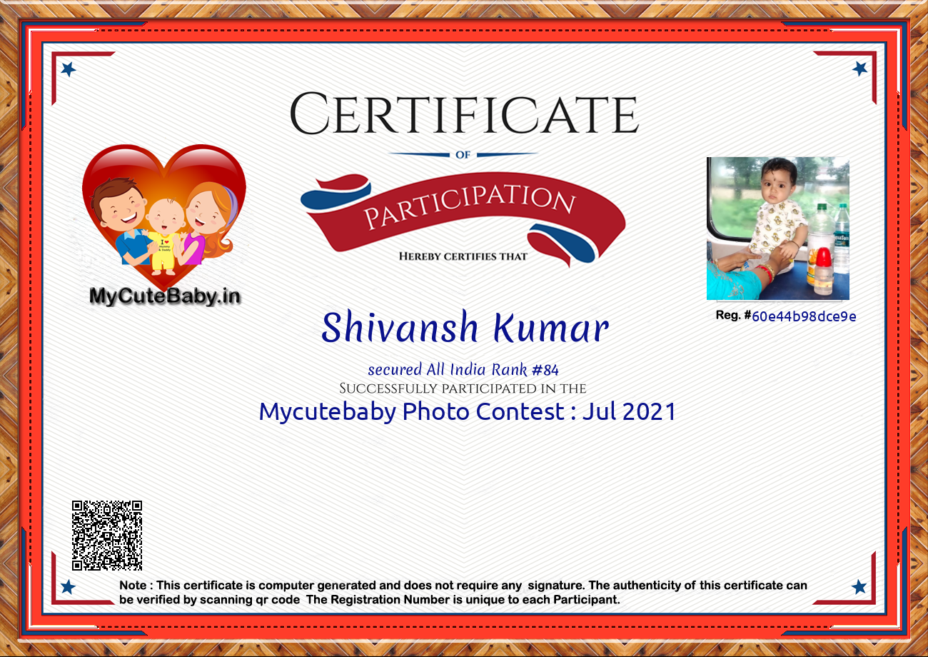 Participation certificate for all the participants whose mycutebaby votes are more than 1000.