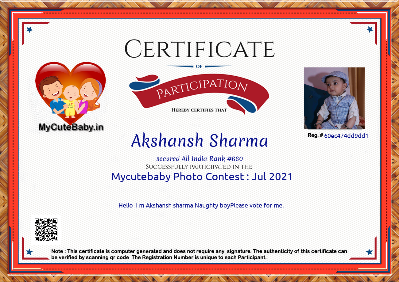 Participation certificate for all the participants whose mycutebaby votes are more than 1000.