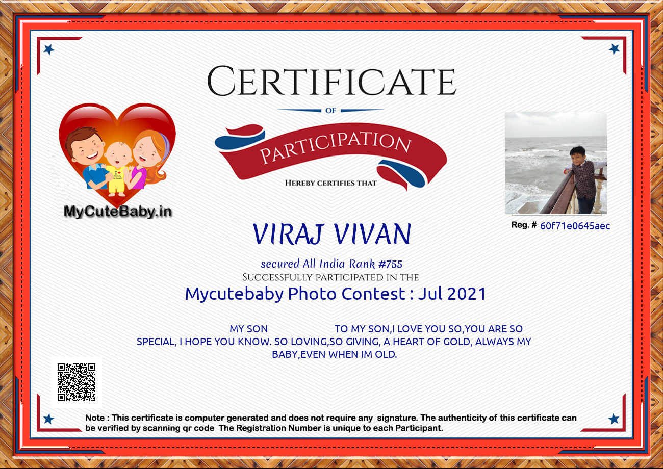 Participation certificate for all the participants whose mycutebaby votes are more than 1000.