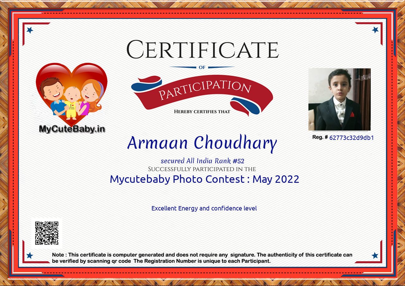 Participation certificate for all the participants whose mycutebaby votes are more than 1000.