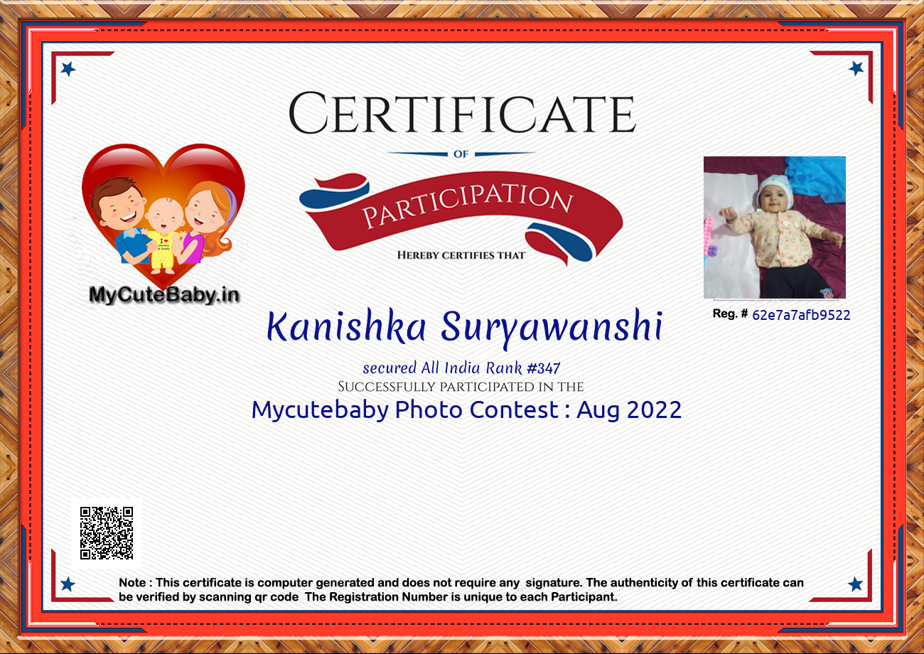 Participation certificate for all the participants whose mycutebaby votes are more than 1000.