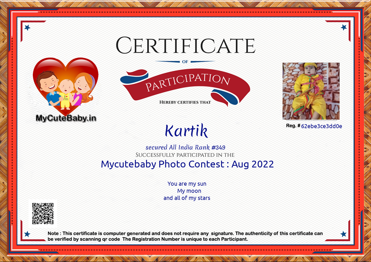 Participation certificate for all the participants whose mycutebaby votes are more than 1000.