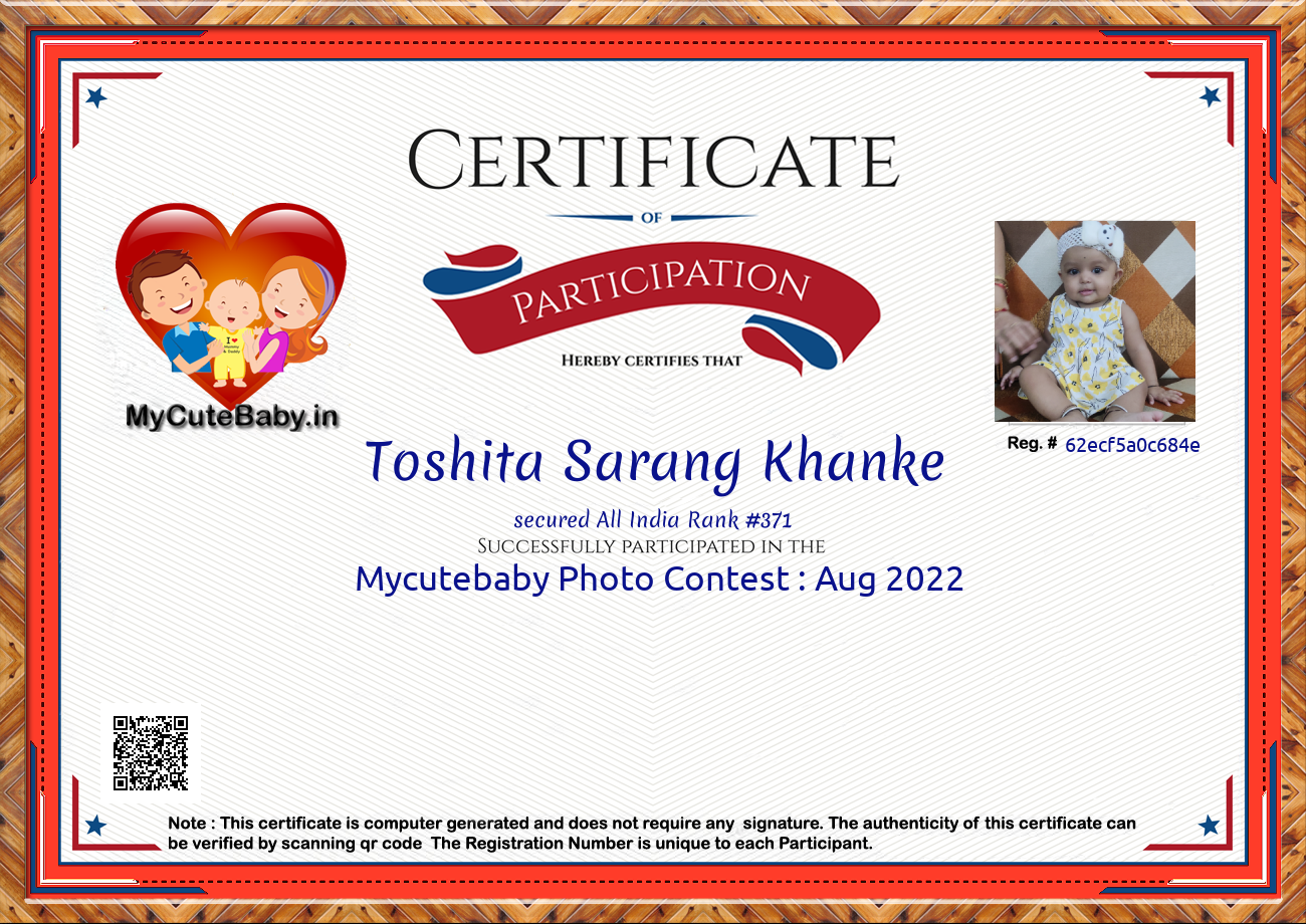 Participation certificate for all the participants whose mycutebaby votes are more than 1000.