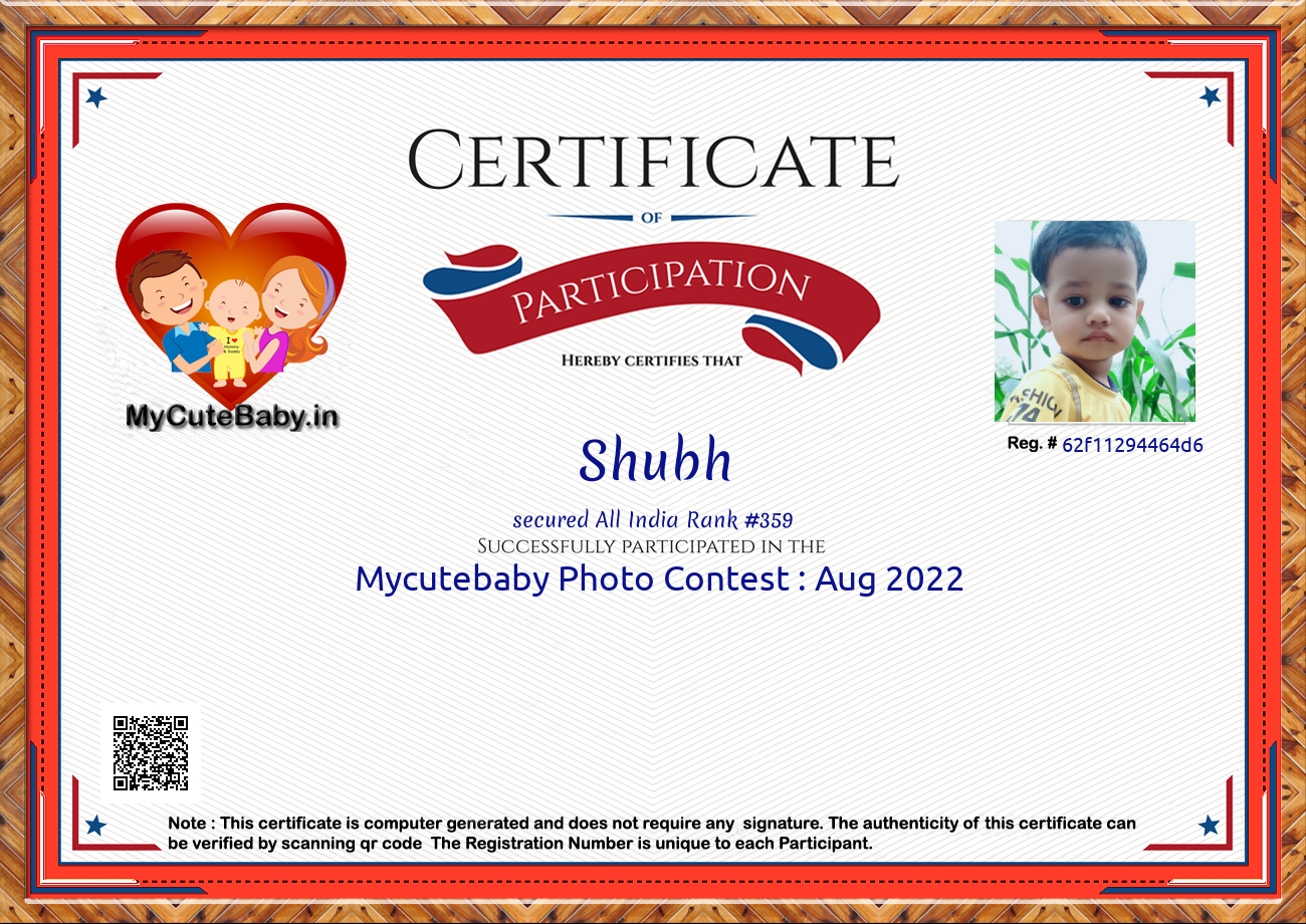 Participation certificate for all the participants whose mycutebaby votes are more than 1000.