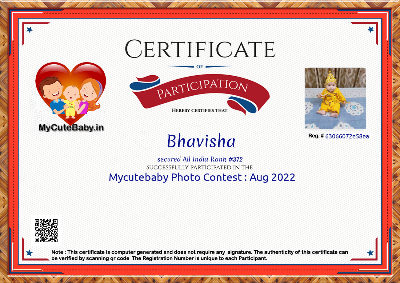 Participation certificate for all the participants whose mycutebaby votes are more than 1000.