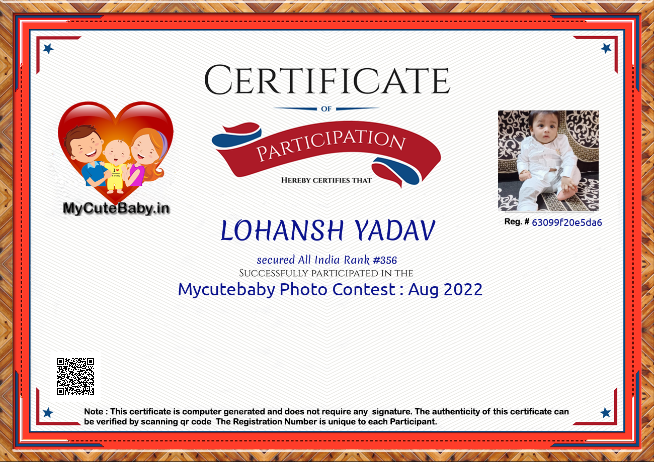 Participation certificate for all the participants whose mycutebaby votes are more than 1000.