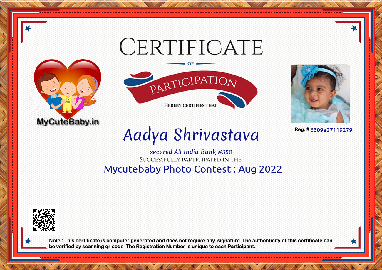 Participation certificate for all the participants whose mycutebaby votes are more than 1000.
