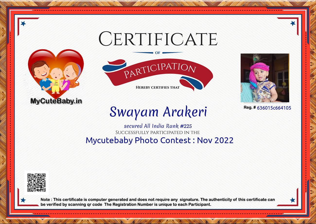 Participation certificate for all the participants whose mycutebaby votes are more than 1000.