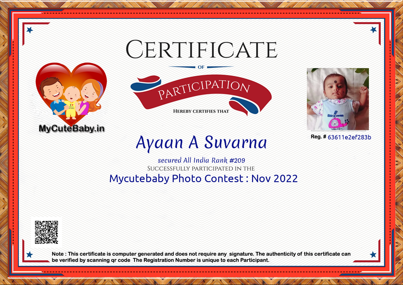 Participation certificate for all the participants whose mycutebaby votes are more than 1000.