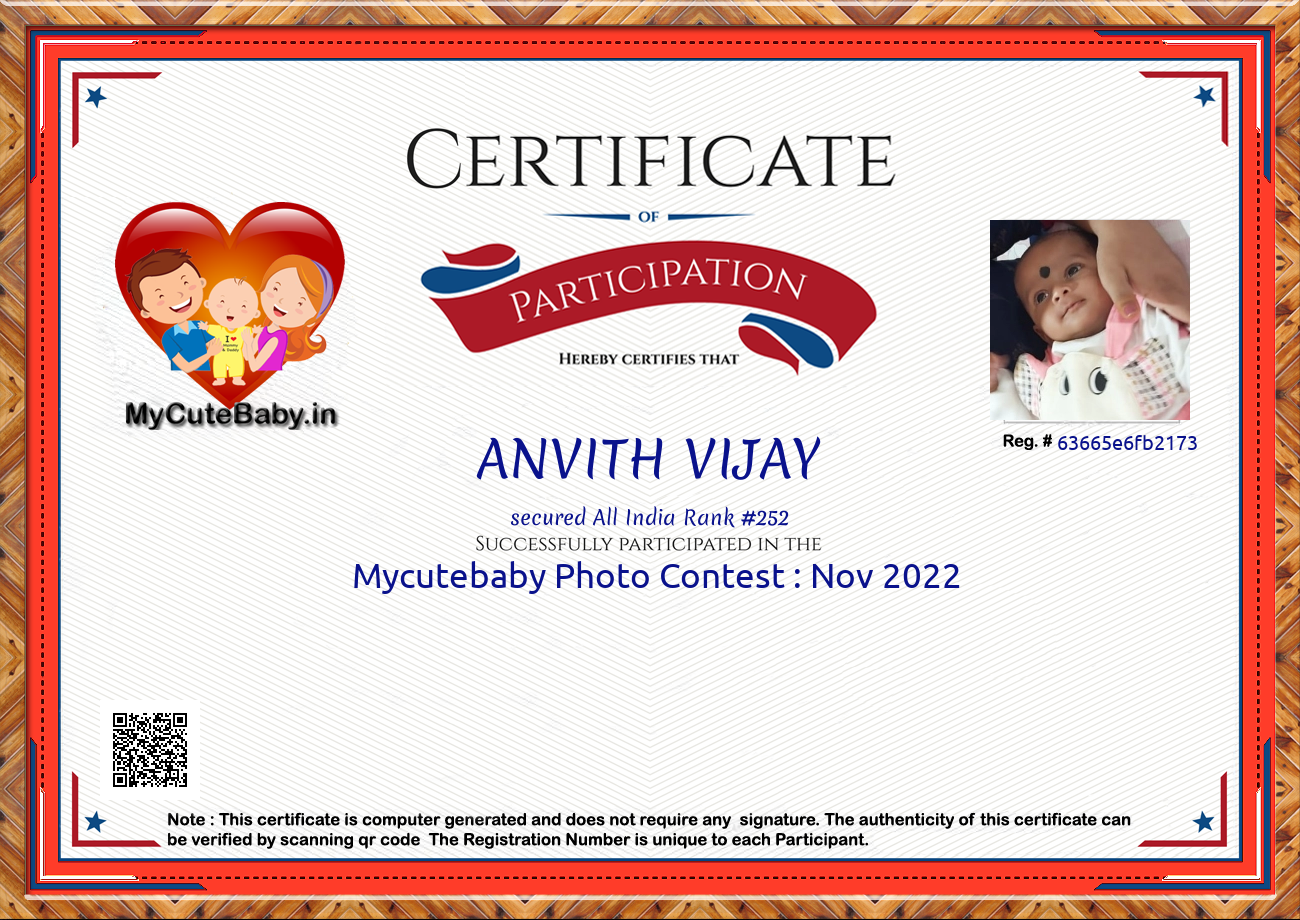 Participation certificate for all the participants whose mycutebaby votes are more than 1000.