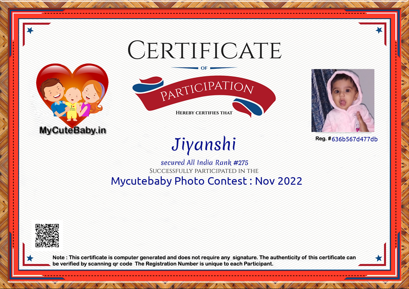Participation certificate for all the participants whose mycutebaby votes are more than 1000.