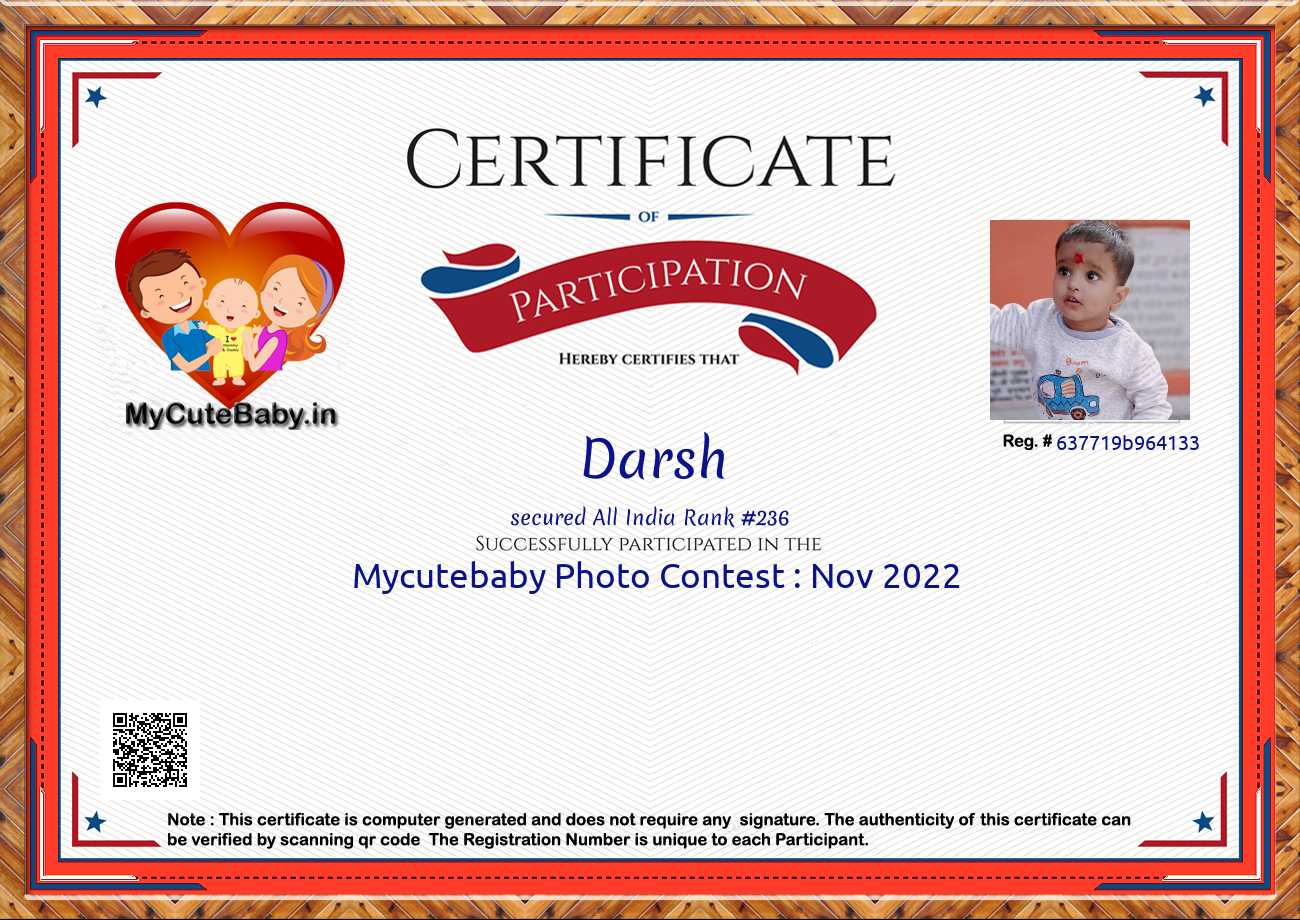 Participation certificate for all the participants whose mycutebaby votes are more than 1000.