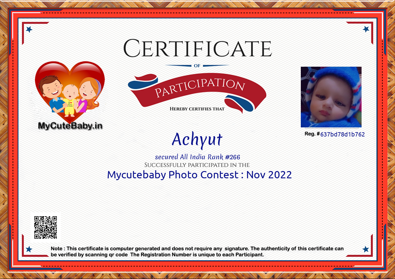 Participation certificate for all the participants whose mycutebaby votes are more than 1000.