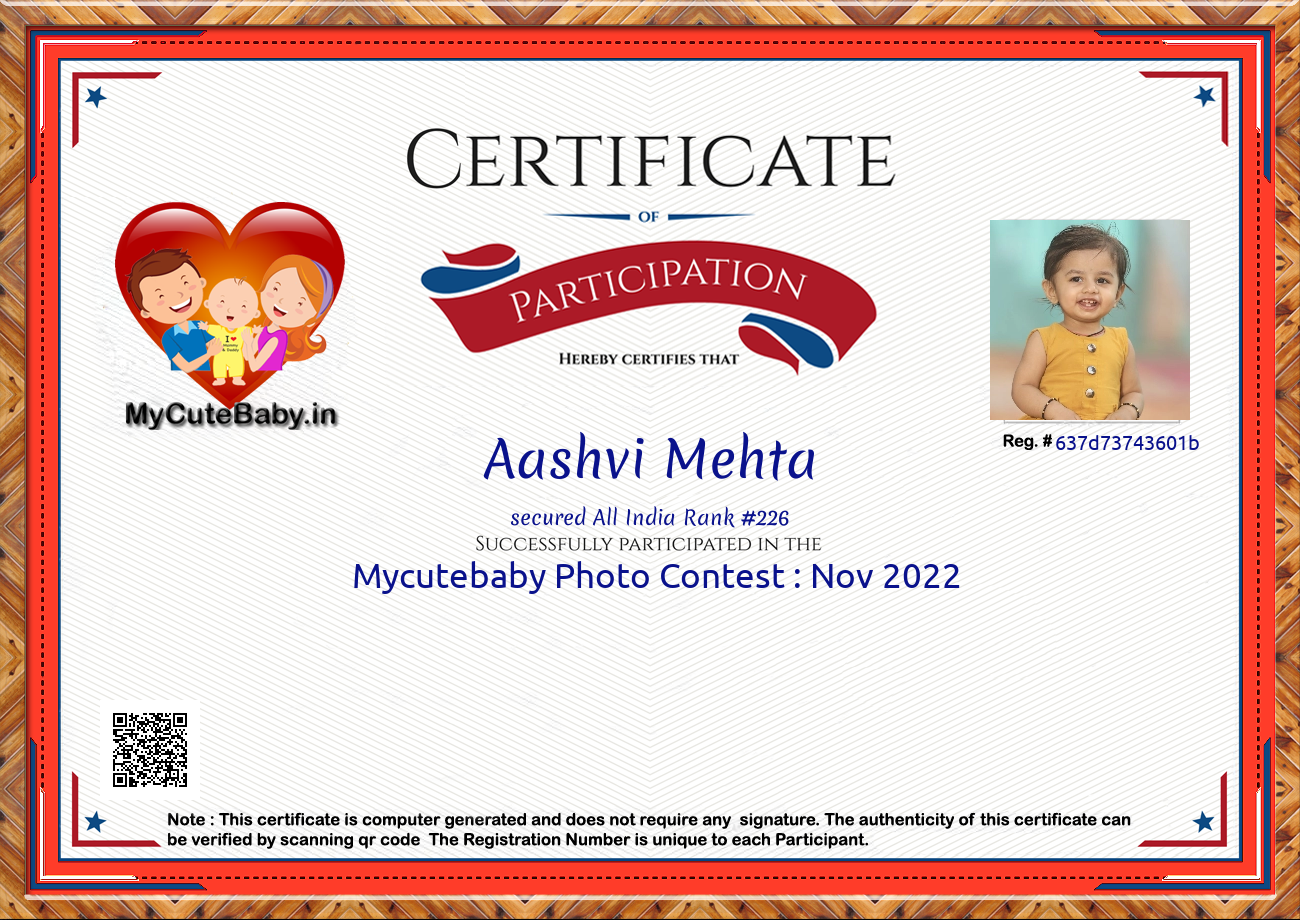 Participation certificate for all the participants whose mycutebaby votes are more than 1000.