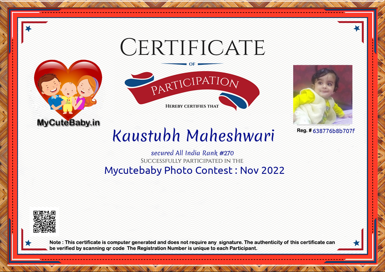 Participation certificate for all the participants whose mycutebaby votes are more than 1000.