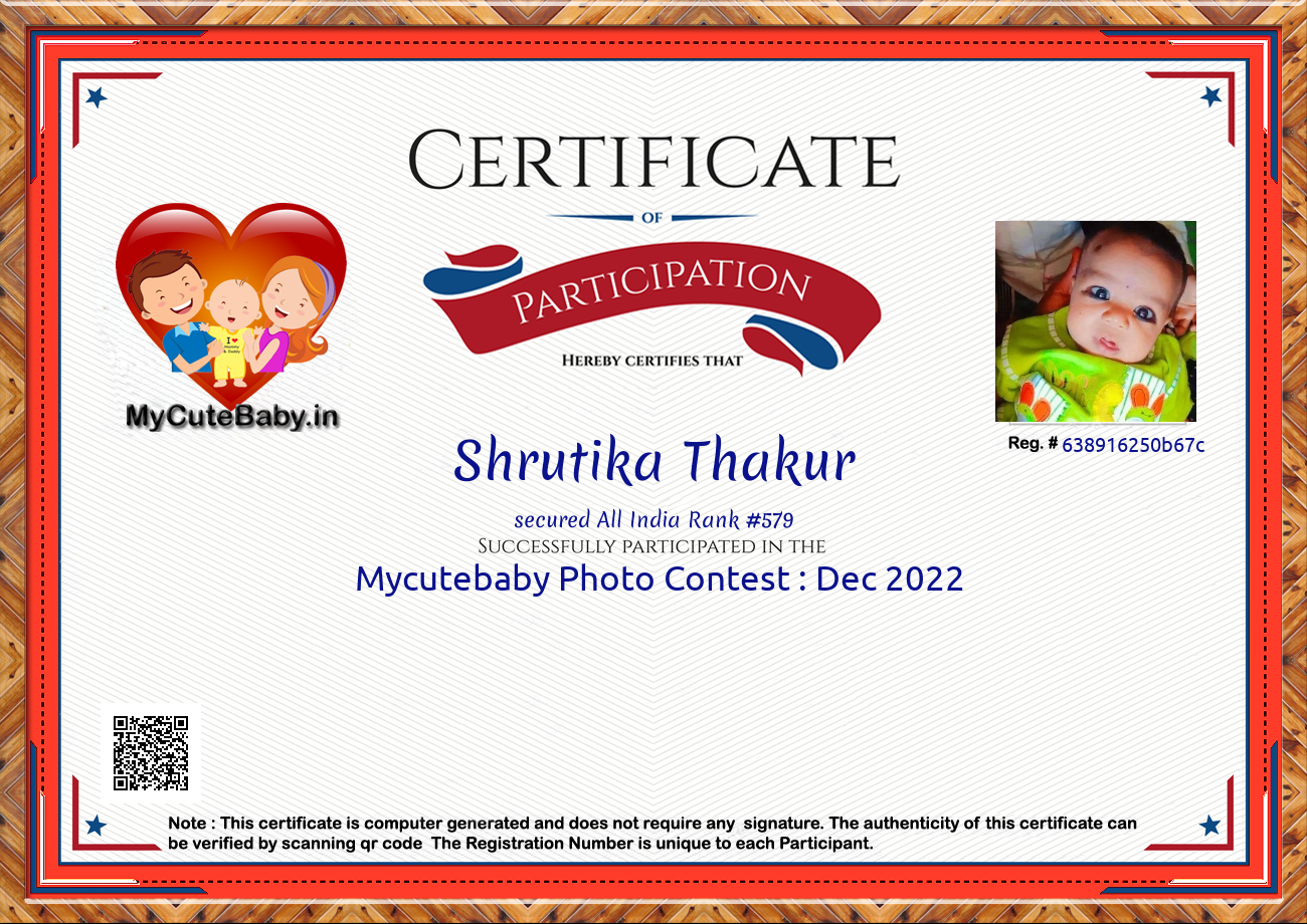 Participation certificate for all the participants whose mycutebaby votes are more than 1000.