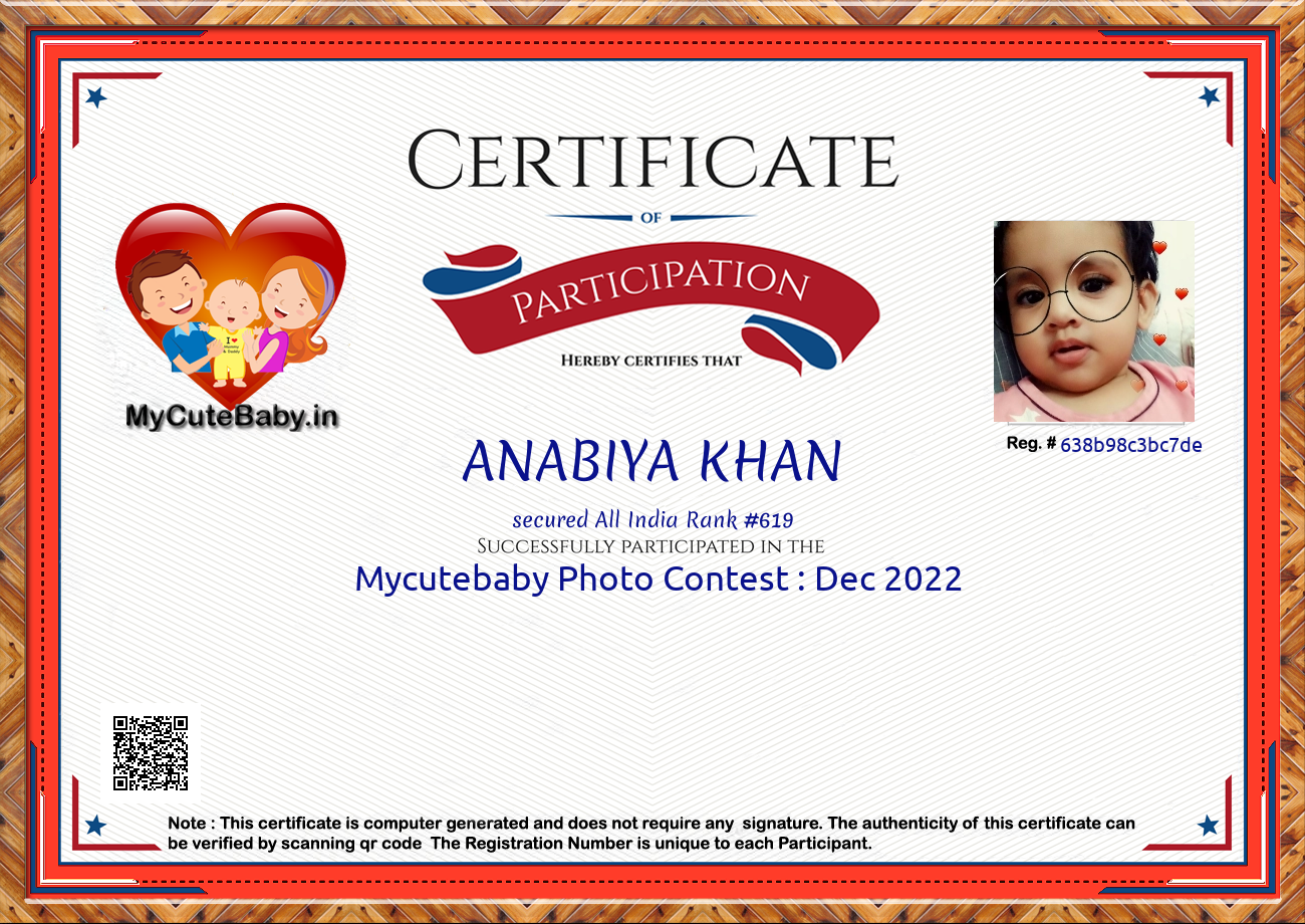 Participation certificate for all the participants whose mycutebaby votes are more than 1000.