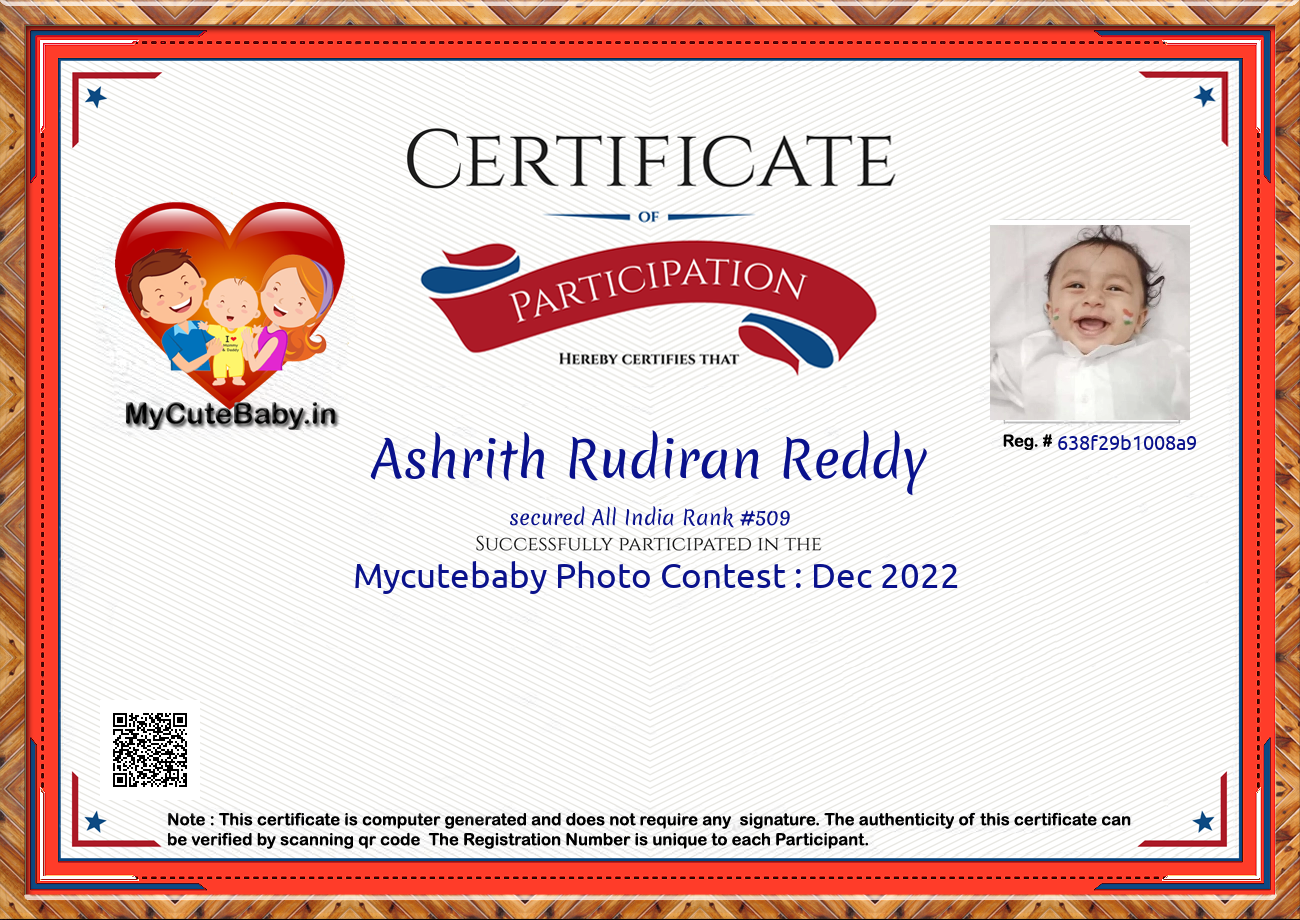 Participation certificate for all the participants whose mycutebaby votes are more than 1000.