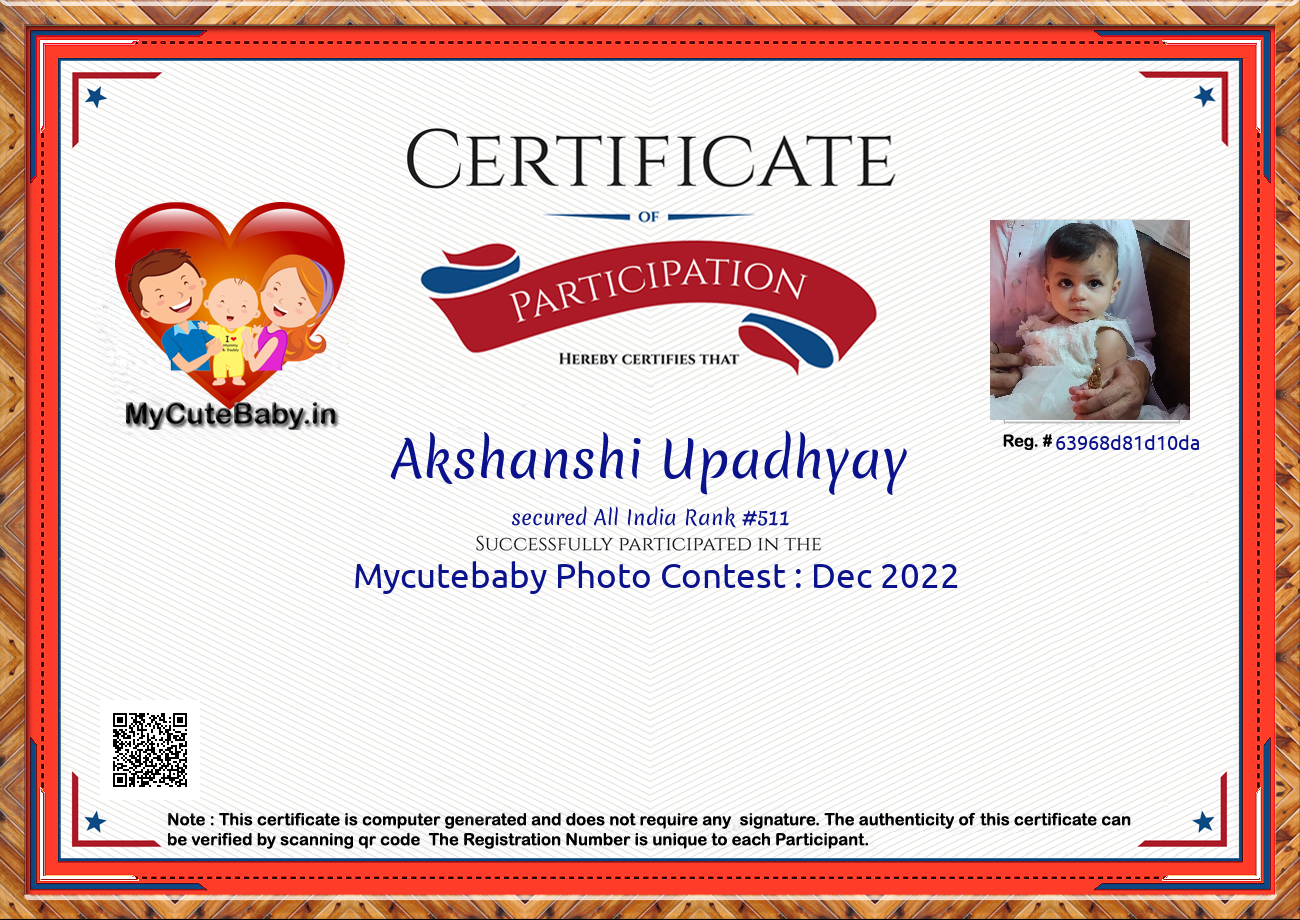 Participation certificate for all the participants whose mycutebaby votes are more than 1000.