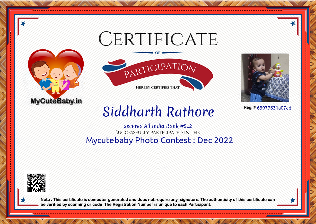 Participation certificate for all the participants whose mycutebaby votes are more than 1000.