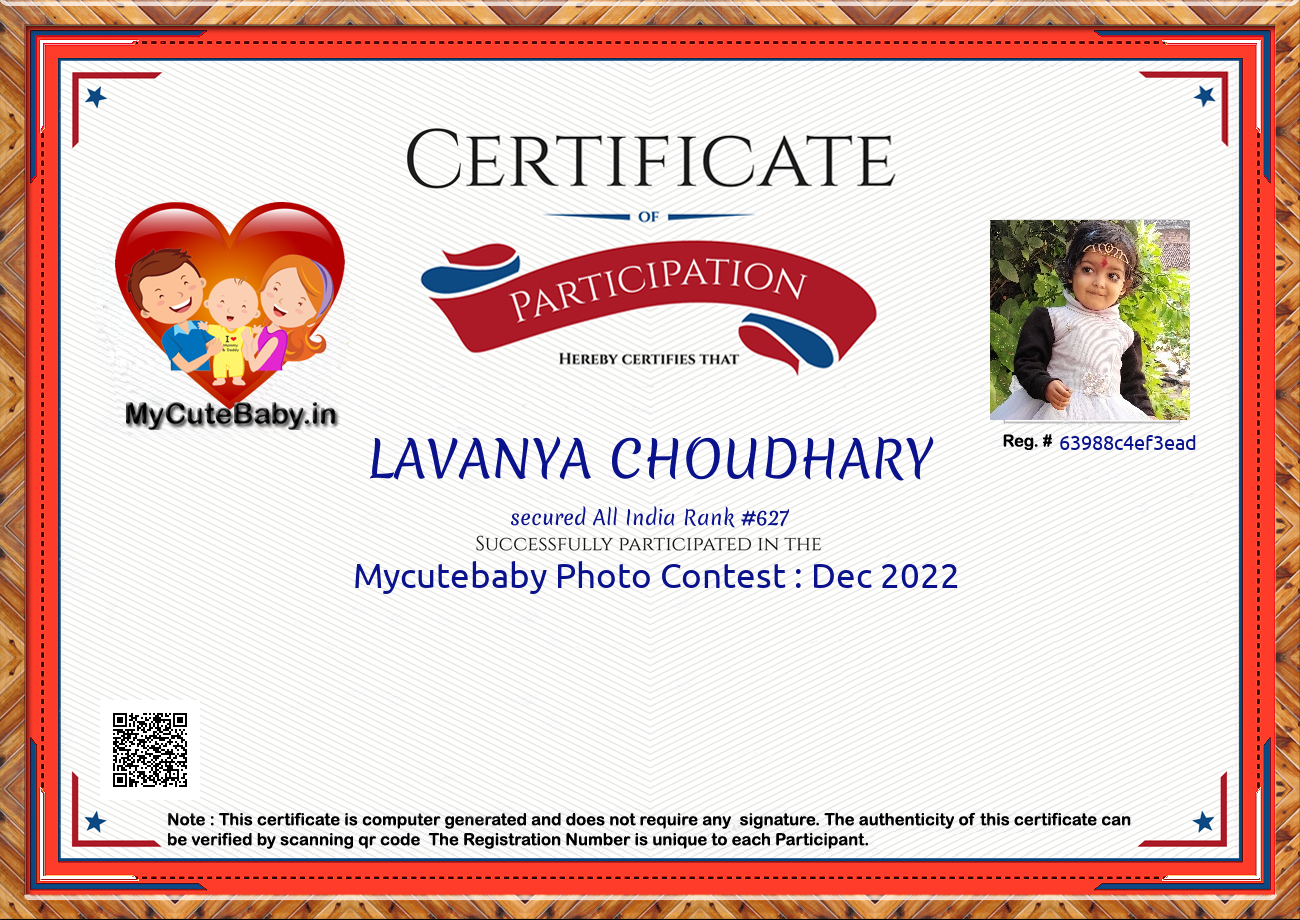 Participation certificate for all the participants whose mycutebaby votes are more than 1000.