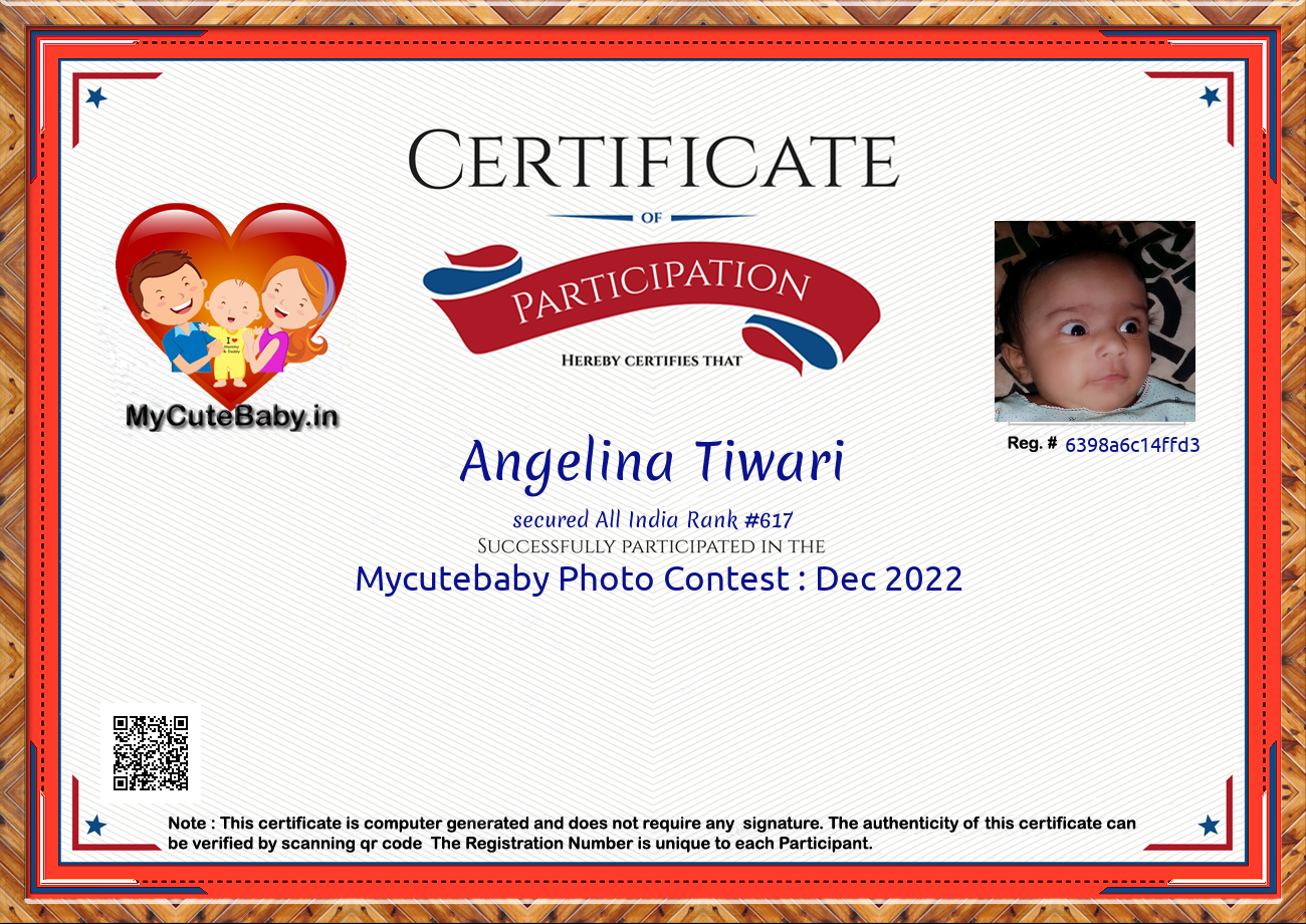 Participation certificate for all the participants whose mycutebaby votes are more than 1000.