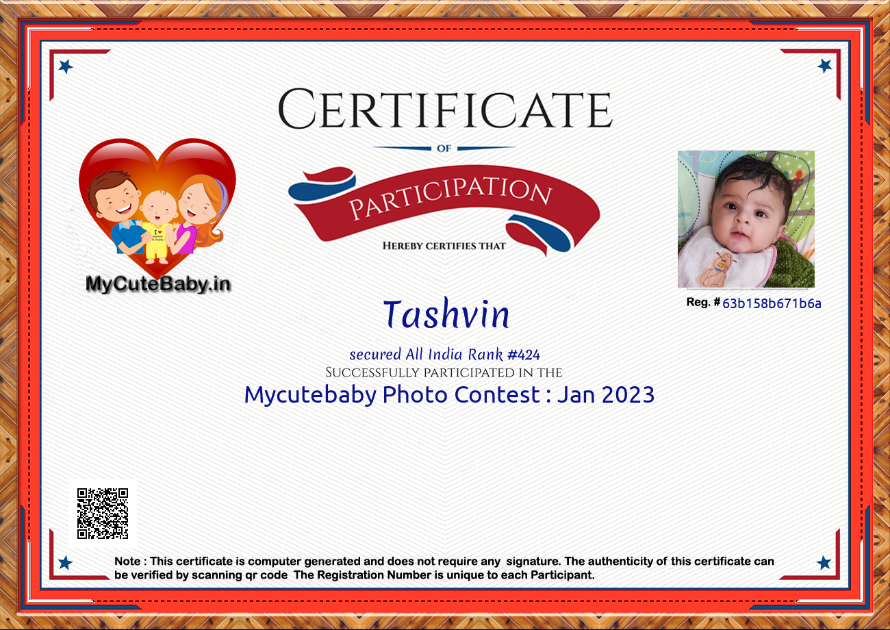 Participation certificate for all the participants whose mycutebaby votes are more than 1000.
