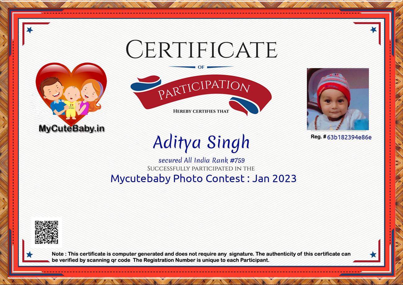Participation certificate for all the participants whose mycutebaby votes are more than 1000.